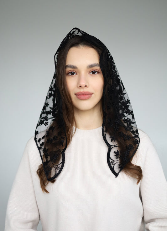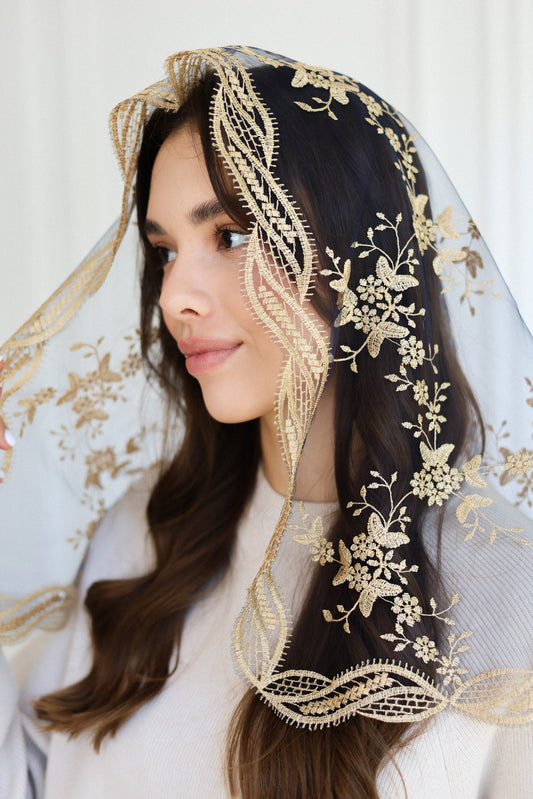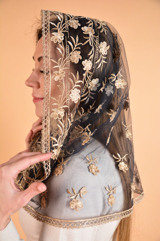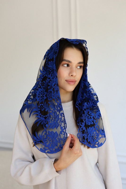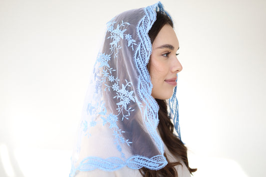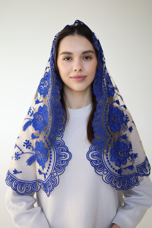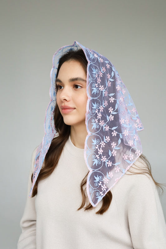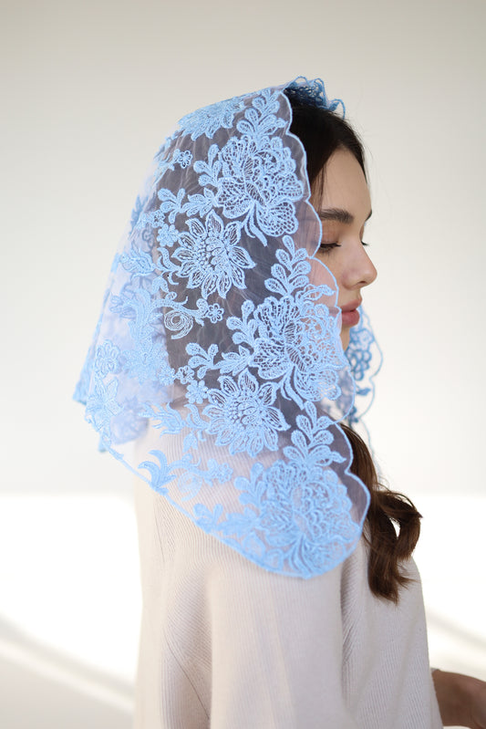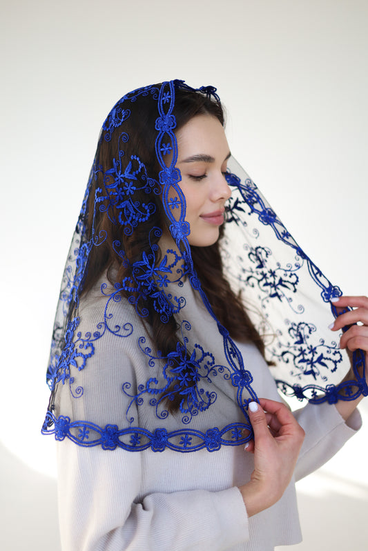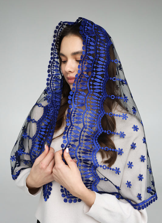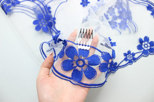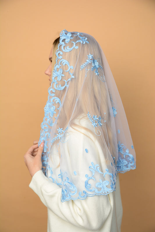 BLUE VEIL WITH EMBROIDERY ON THE BACK