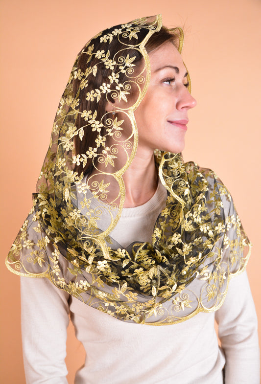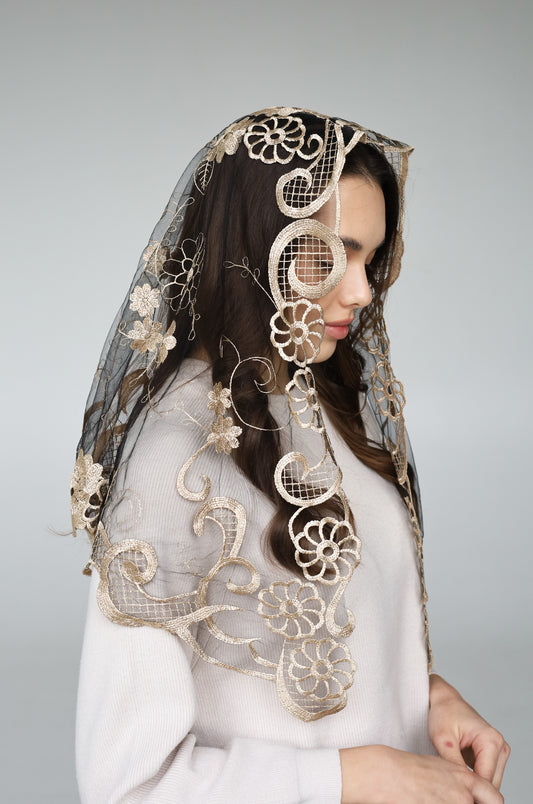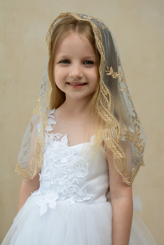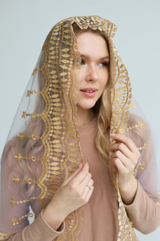 GOLD LONG FLORAL VEIL