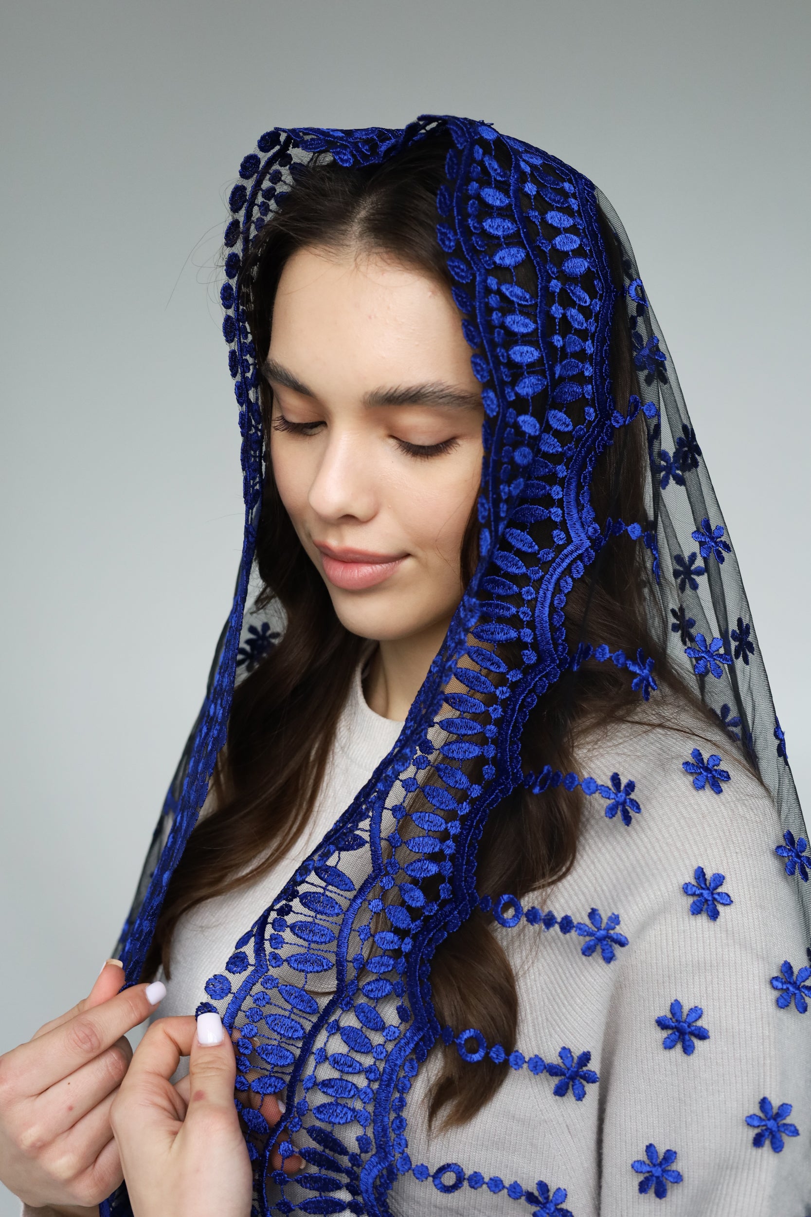 - Long Navy Blue Mantilla
