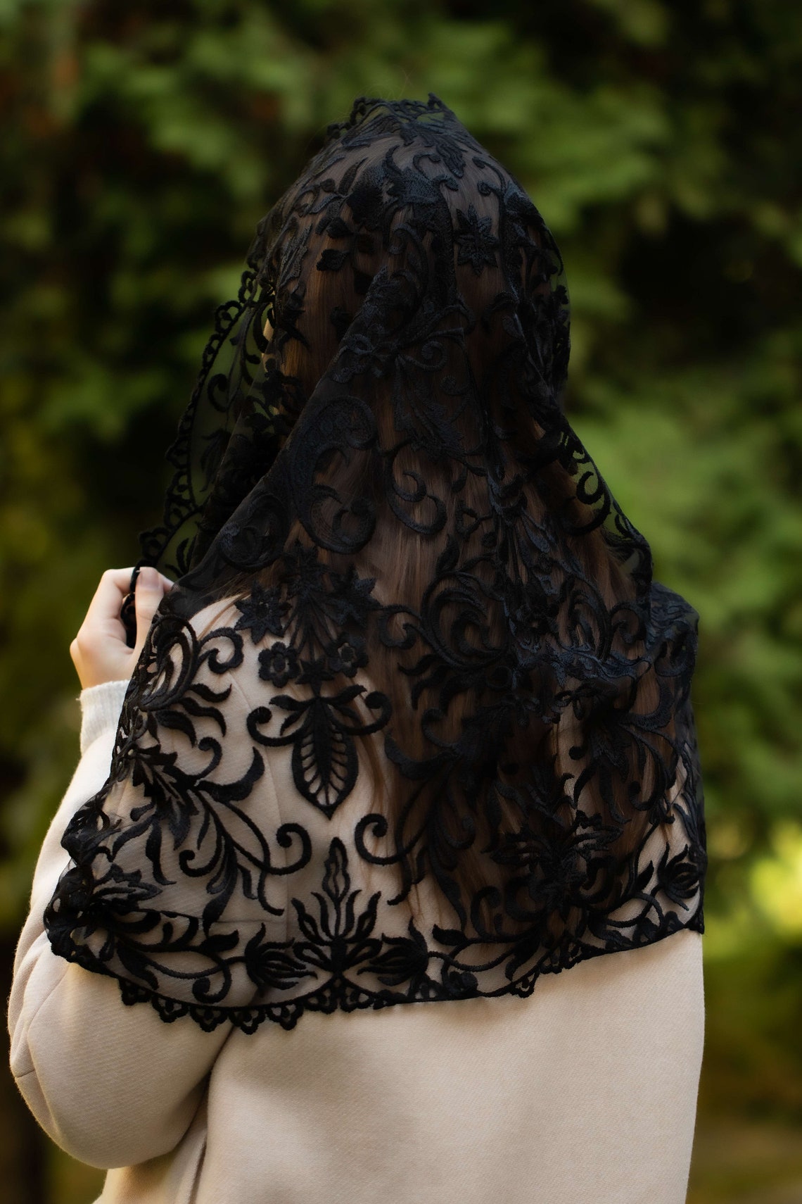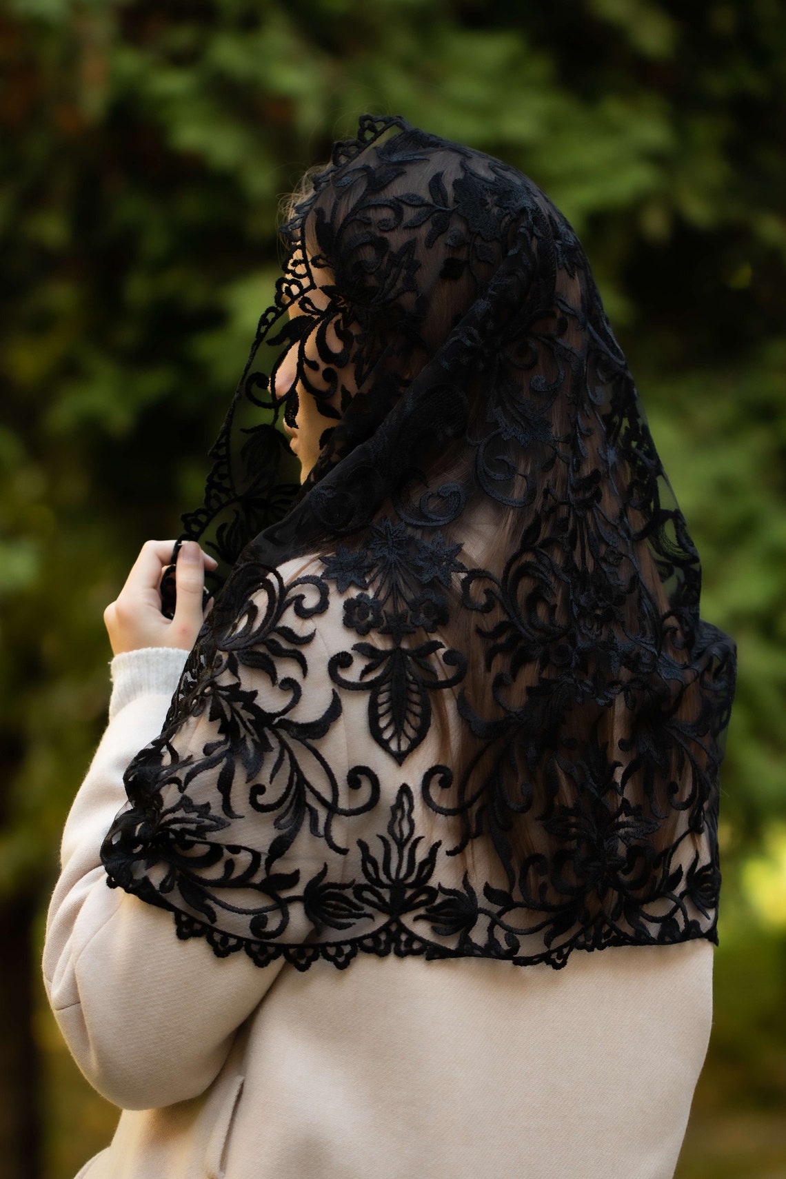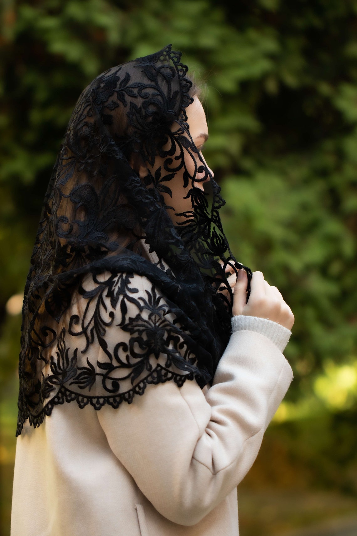 Veil is made from viscose and polyester.